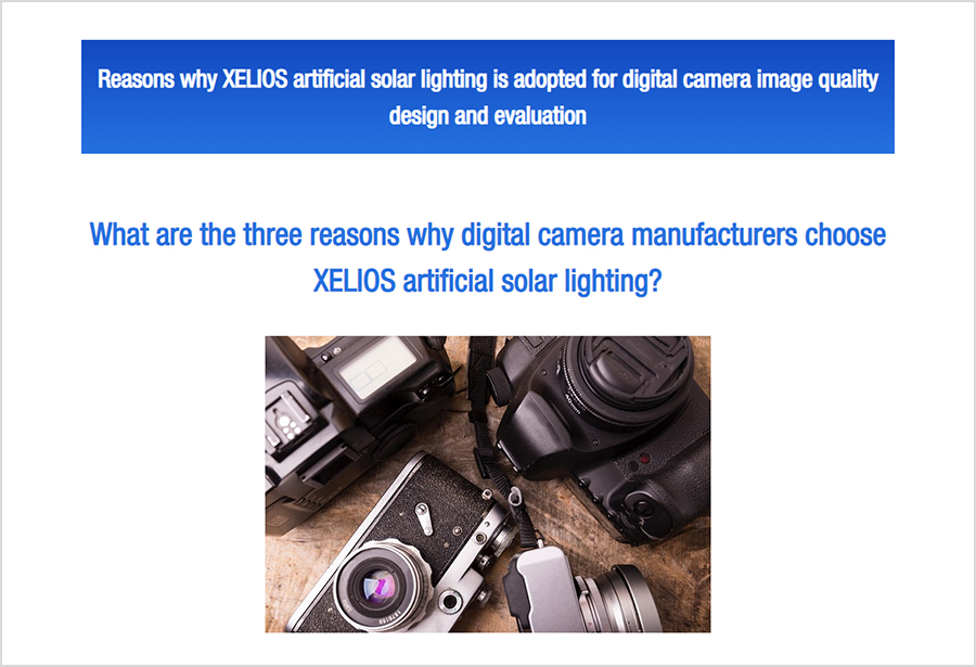 “Reasons why XELIOS artificial solar lighting is adopted for digital camera image quality design and evaluation” was added to the track record of adoption by use.