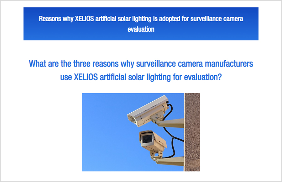 ・Click here for the “Reasons why XELIOS artificial solar lighting is adopted for surveillance camera evaluation” page.