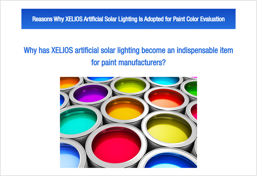・Click here for the “Reasons Why XELIOS Artificial Solar Lighting Is Adopted for Paint Color Evaluation” page.