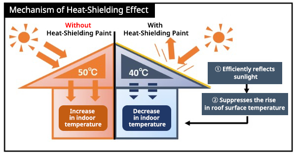 Reducing CO2 emissions is a major theme, and one way to contribute to this is through the use of heat-shielding paint. By reflecting heat instead of absorbing it, this paint helps prevent increases in nighttime atmospheric temperatures. This paint is also expected to reduce electricity consumption by air conditioners and other electrical devices, and work is underway to impart such properties to many of the paints being used for buildings and automobiles.